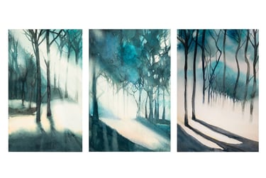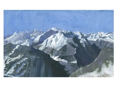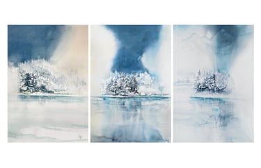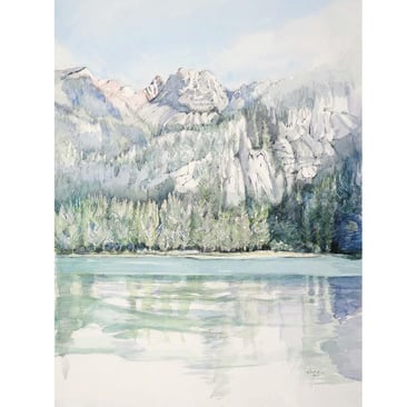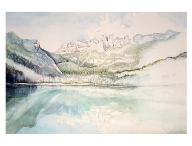Placid lakes and stormy peaks emerge from the mist , illuminated by an eternal,mystical and supernatural light all painted exclusively "En Plein Air "